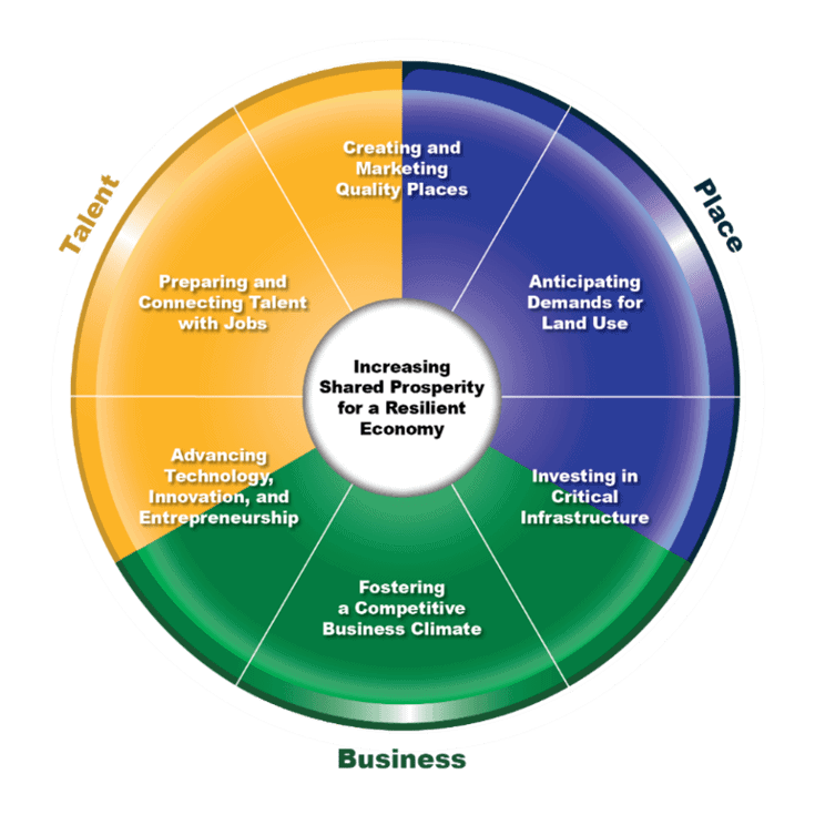 - Promoting the link between quality places, creating a strong business climate, and attracting and retaining talent.