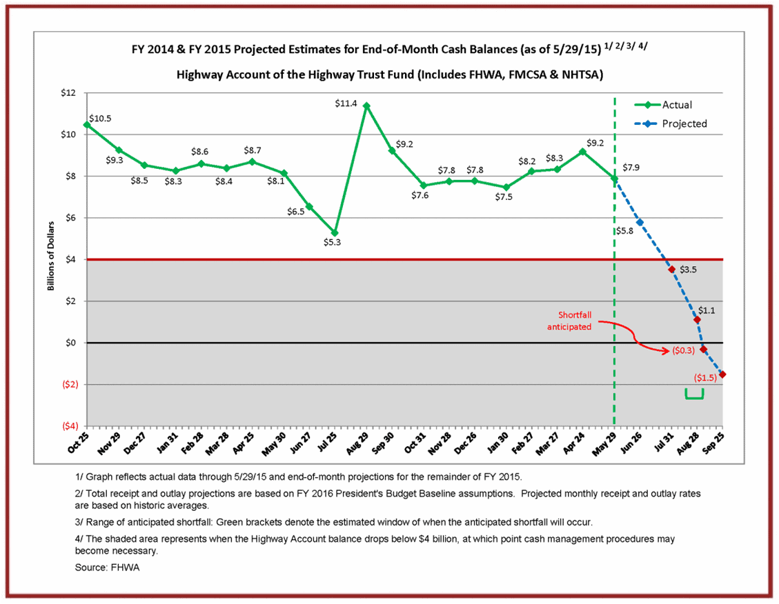 Last week, Transportation Secretary Foxx called on Congress to adopt a long-term transportation funding bill that significantly increases transportation funding. He also reintroduced a dashboard on the DOT website that provides a monthly snapshot of how close the nation’s transportation is to insolvency.