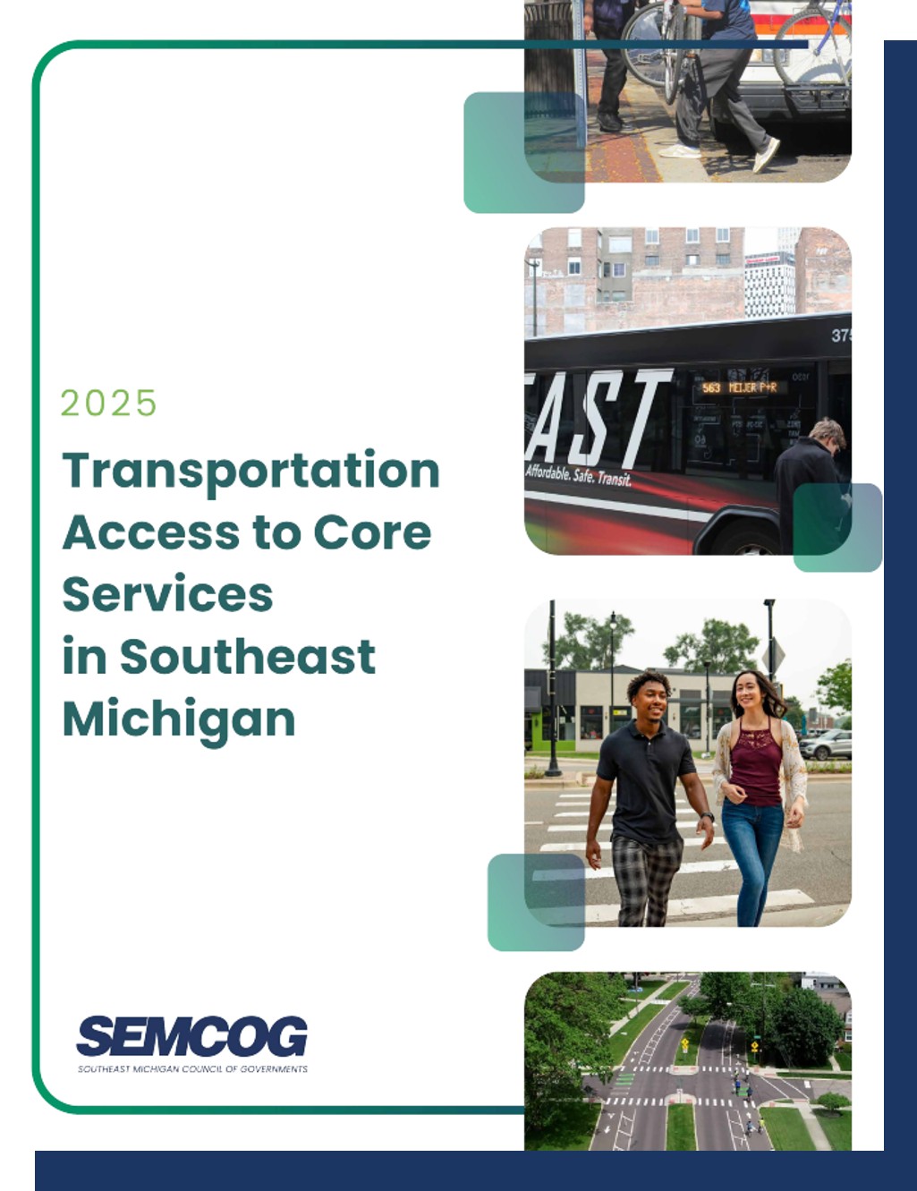 The Transportation Access to Core Services in Southeast Michigan report evaluates how well people across the SEMCOG region can reach key destinations by walking, biking (accounting for comfort levels), using fixed-route transit, and driving.